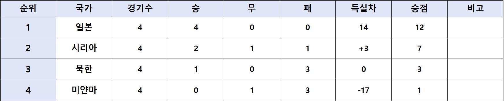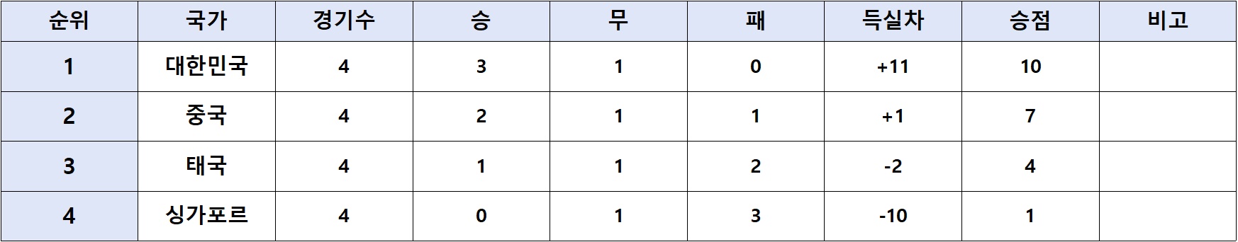 I조 예선결과 및 조별순위