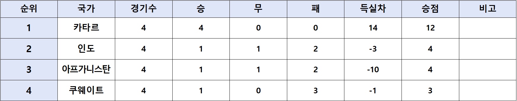 아시아 2차예선 조별순위