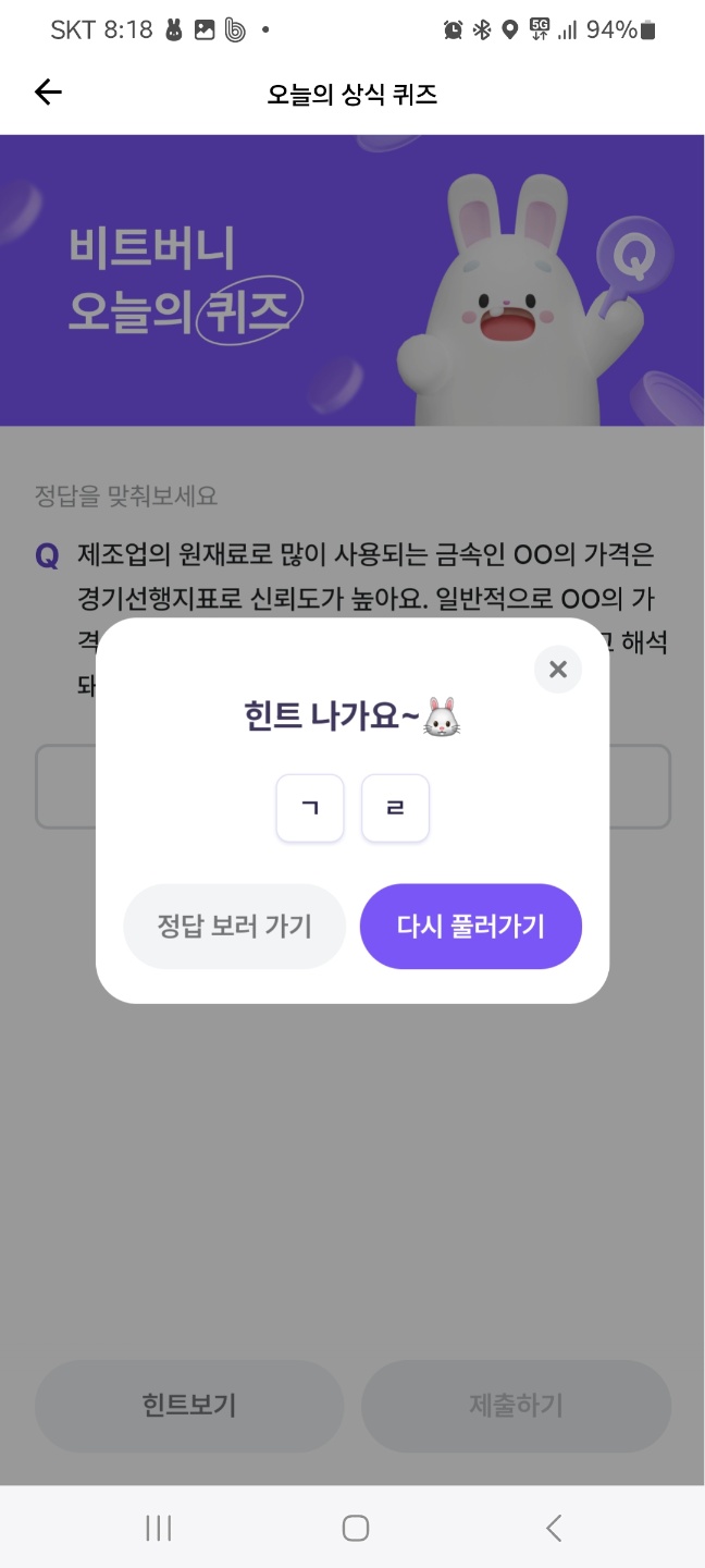 비트버니 퀴즈 힌트 : ㄱㄹ(초성)