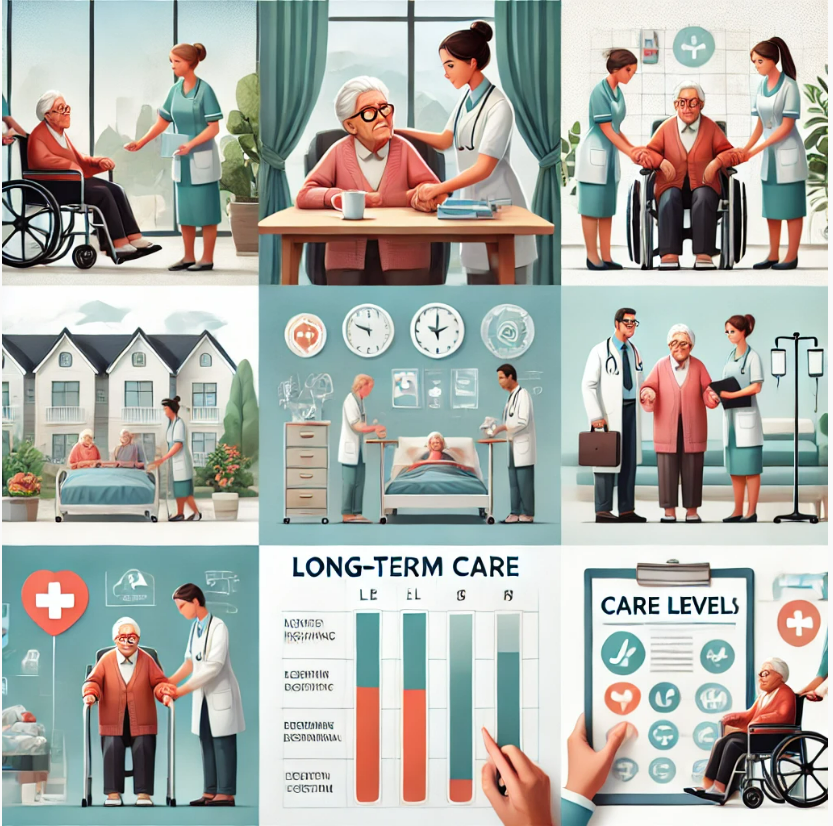 일상생활 수행이 매우 어려운 경우로, 요양시설 입소, 방문요양, 주야간 보호 등의 폭넓은 서비스가 제공됩니다. - 3등급 ~ 5등급