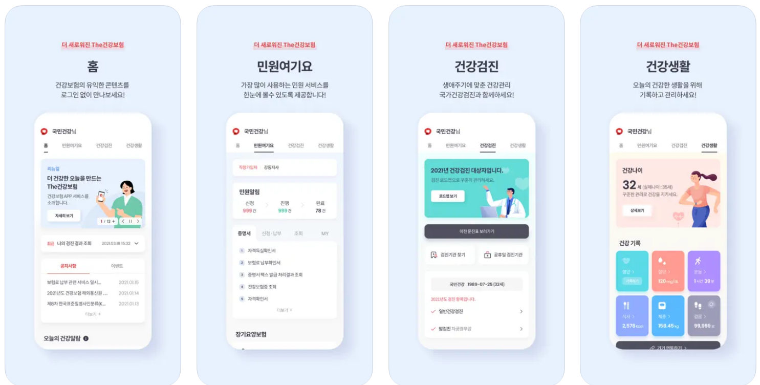 - 보험료 조회 및 납부, 환급금 조회 및 신청, 진료 내역 확인 등의 서비스 제공