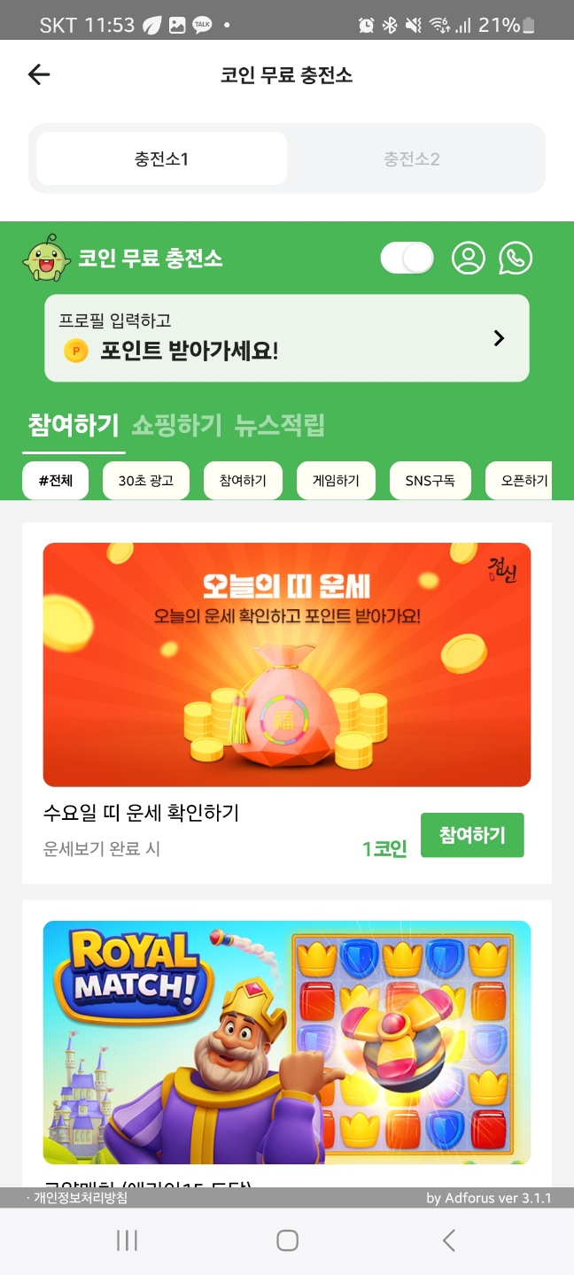 가끔 광고보면 주는 깜짝코인도 주니 확인 잘 하세요!